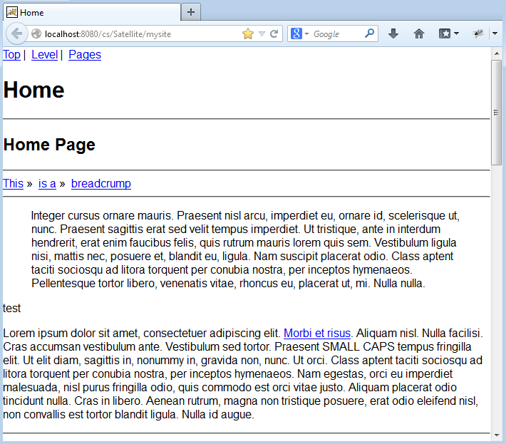 As a first step we will replace the template used for the mysite.element.page.HomeLayout class generated in the previous section and change the /mysite/simple.html as follows